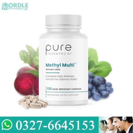 Boost Your Daily Vitamin Intake With Methyl Multi Without Iron. This Methylated Multivitamin is Specially Formulated to Support Overall Health and Wellness. Easily Absorbable and Free of Added Iron, It is Perfect for Anyone Looking for a Comprehensive and Efficient Way to Meet Their Daily Nutrient Needs. Order Now in Pakistan.